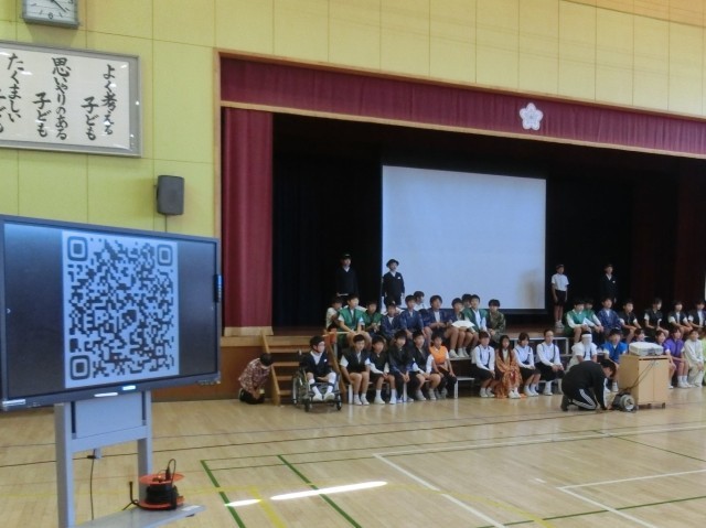 2年生も、はりきって表現していました。歌や演奏を楽しんでいることが伝わってきました。曲と曲の間の移動にも気を使い、「音」を大切にしていました。最後の合唱では、1年生も手話を真似していました。