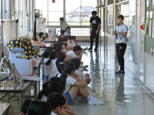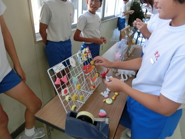 学習発表会が終わり、昼食後、6年生のキッズショップが始まりました。下級生や家族の皆さんで、出店した廊下はとてもにぎわいました。