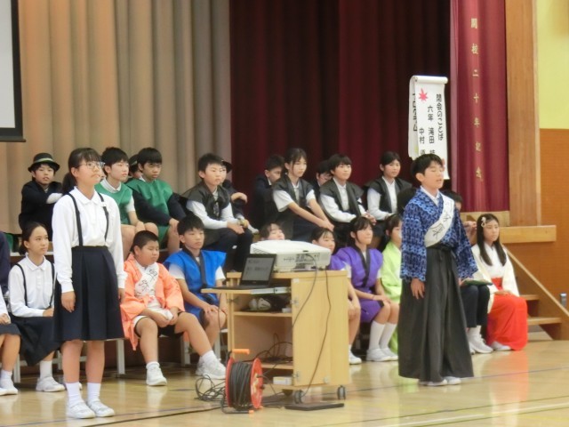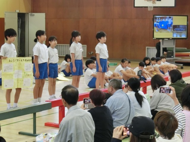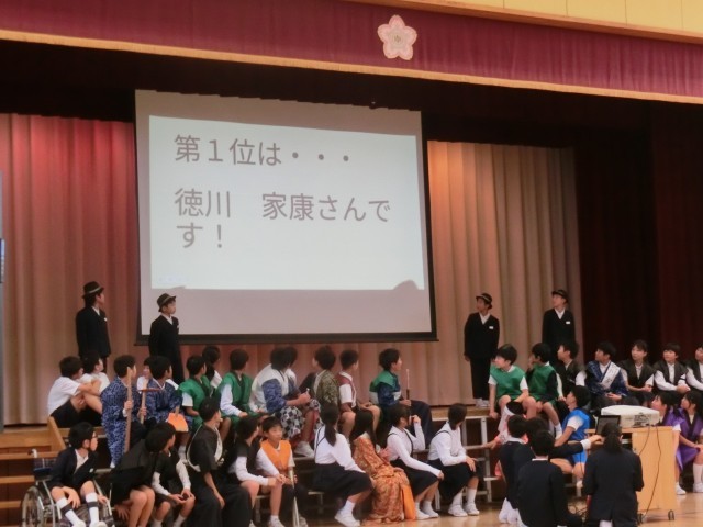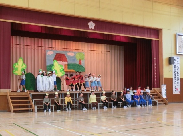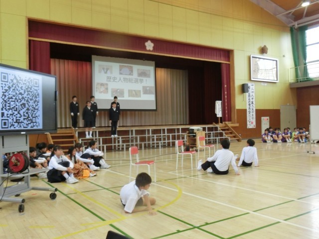 コミカルな6年生の劇表現を見て、下級生たちは楽しそうでした。演技だけではなく、機器操作も自分たちで行っています。最後の総選挙の場面では、実際に先生方が投票しました。閉会では、6年生の代表者が、上手に挨拶していました。