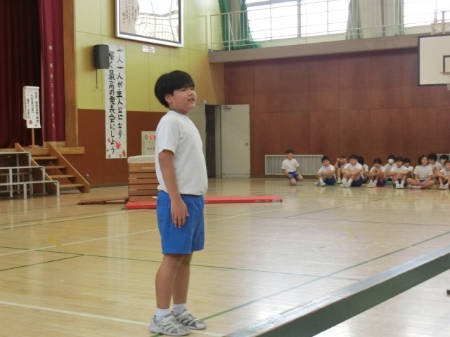 5年生は、宿泊学習の活動や感想を大きな声でゆっくり話すことができました。また、一人一人が役割をしっかり果たし、練習の成果を発揮することができたので、とても満足できたようです。
