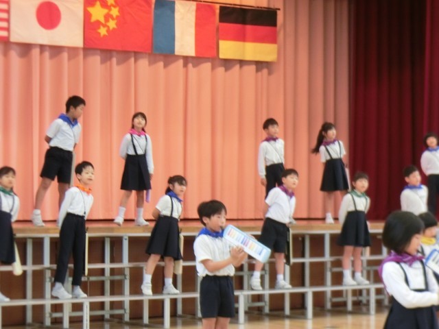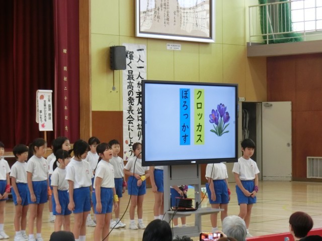 1年生の大きな声や動作を観て、観客の皆さんはとても驚いていらっしゃいました。時間をかけて繰り返し練習したことで、一人一人自信を付いたのだと思います。