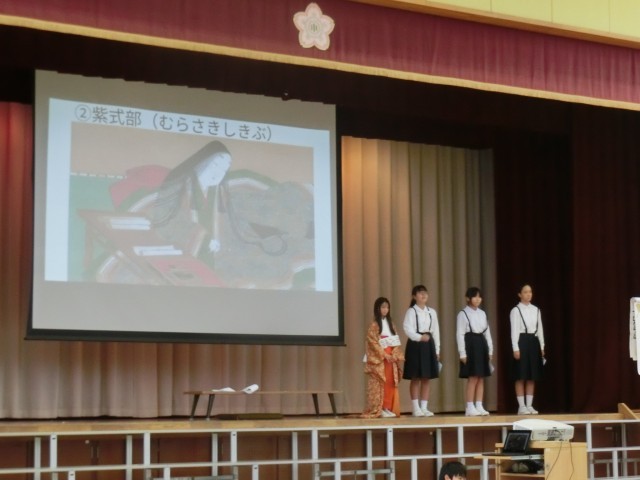 校長先生の次に、PTA会長さんが挨拶されました。その後、児童会代表者の二人が、学習発表会の目当てや見どころを紹介してくれました。 -