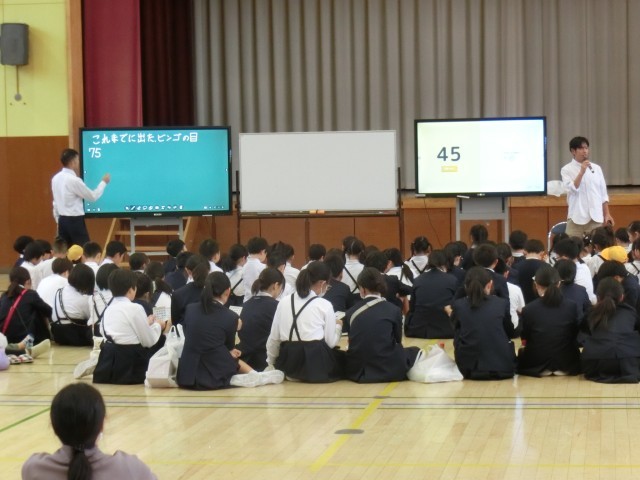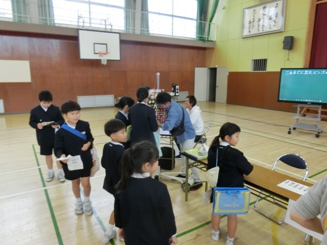 今年度も、午後からPTAフェスティバルが盛大に行われました。体育館では、いくつものアトラクションがあり、子供たちが挑戦していました。また、喫茶コーナーやポップコーン、飲み物、有給品等の販売もあり、子供たちや家族の皆さんも楽しそうでした。そして、今年度は、校内でのウォークラリーやビンゴ大会があり、盛り上がりに花を添えていました。