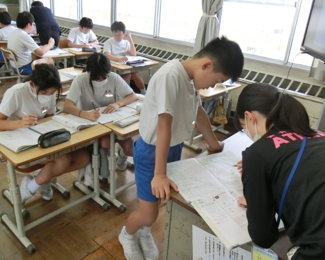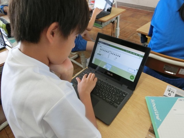2組は、理科の授業をしていました。全体での学習が終わったあと、個々に問題を解いて理解できているか確認していました。 -