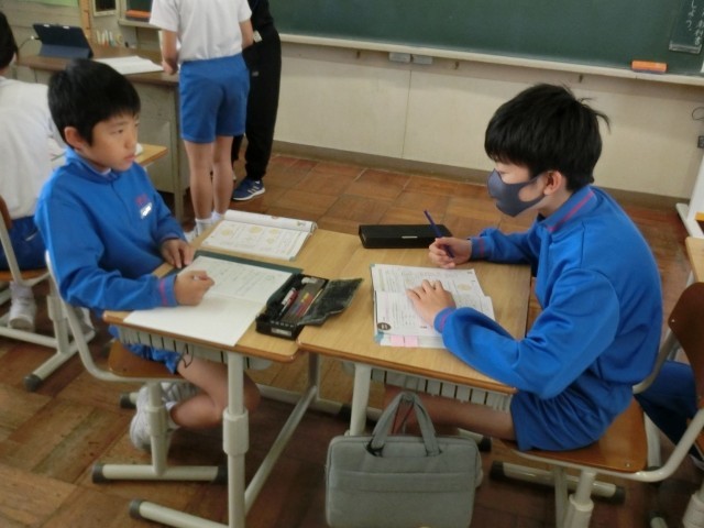 6年1組は、算数科の授業をしていました。課題の達成を目指し、学び方(誰と学ぶか)を決め、熱心に取り組んでいました。また、子供たちの笑顔から、学習発表会をやり遂げたという満足感が感じられました。