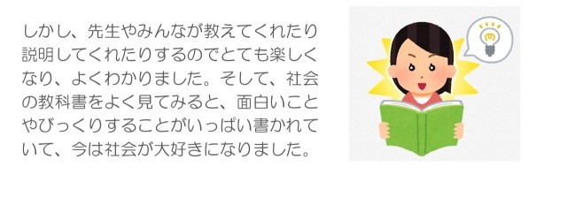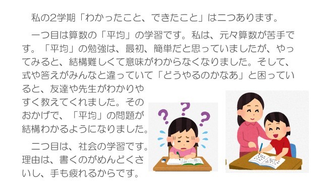 ・手伝いをしたらほめられてうれしかったです。(3年)