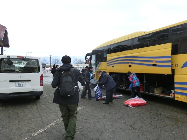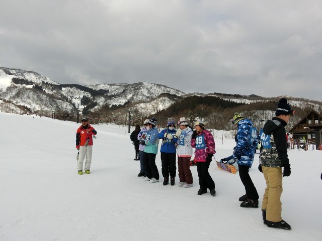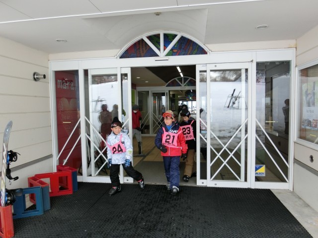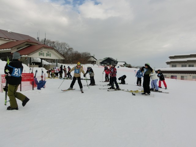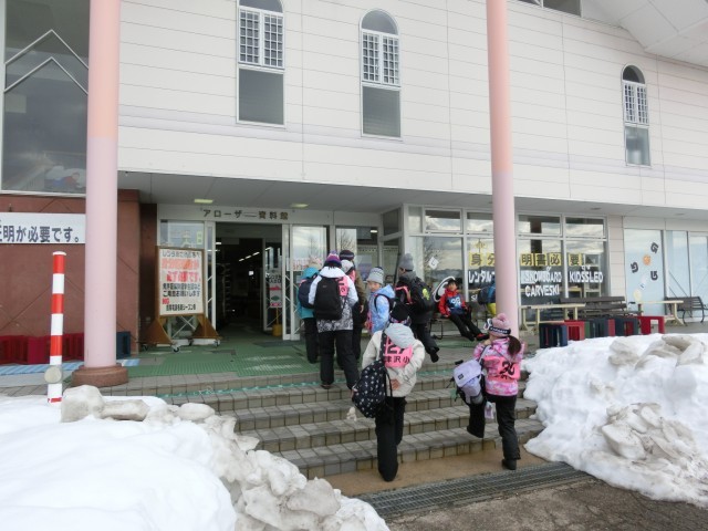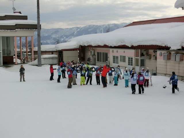 予定より早く到着しました。レンタルスキーをとりに行き、休憩所に荷物を置きます。このあと、開校式です。