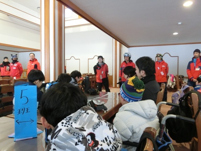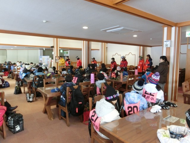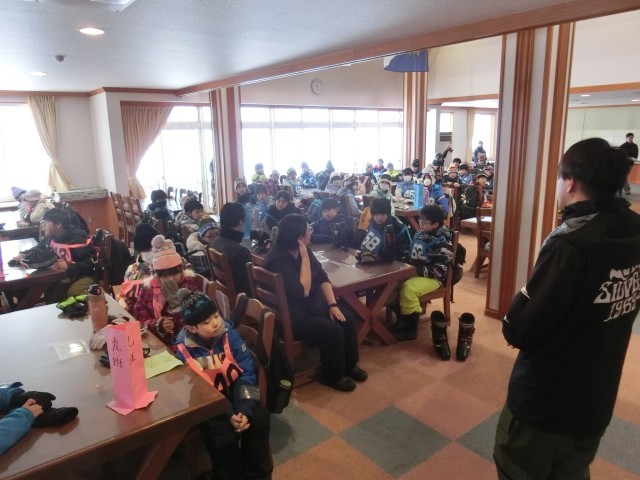 次に、講師の先生方も紹介です。班ごとに紹介され、「お願いします」と挨拶しました。そのあと、代表の子供が、「楽しみにしていたスキー教室です。けがをしないように楽しみます。」と挨拶しました。 -