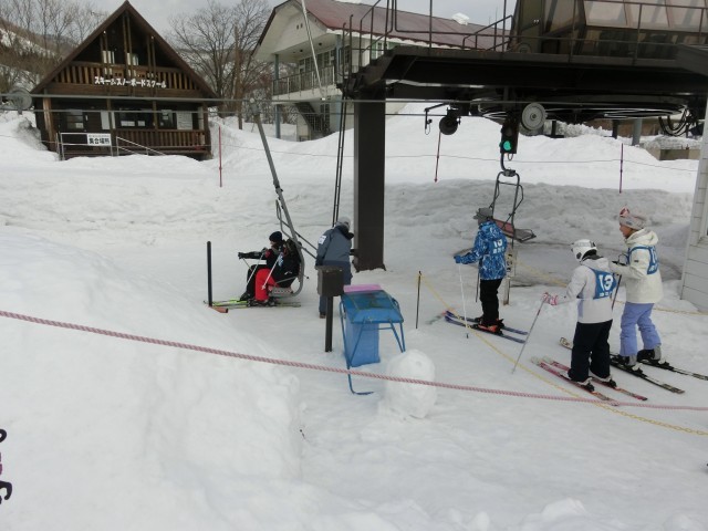 ゲレンデに出ると、挨拶をした後、準備運動をし、スキー板を付け、早速リフトに乗っている班もありました。