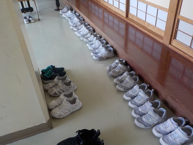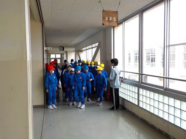 一方、次に体育館に向かう4年生は、休み時間に廊下に整列し、1列ずつ移動していました。