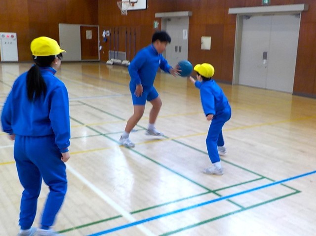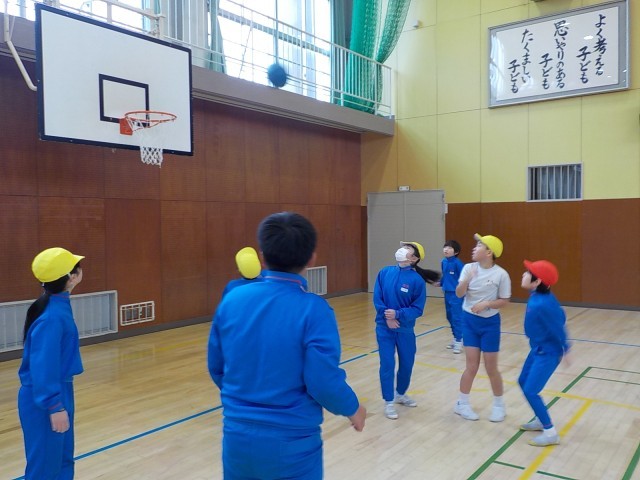 4年生が、体育科でバスケットボールの学習をしてました。みんな楽しそうです。