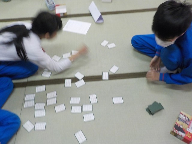 19日、5年生は、百人一首を通してみんなで楽しむ会を開いていました。