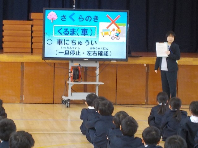 最初に、各学年の代表者に修了証が渡されました。次に、校長先生から、うれしかったこと(主体的に考え行動するようになったこと、なかよし清掃をがんばったこと)や津沢小のよさ(挨拶、温かい言葉・行動)を受け継いだこと、別れが大切であることの三つのお話がありました。その後、先生方とお別れの挨拶をし、最後に、春休みの過ごし方(「さくらのき」)をみんなで確認しました。