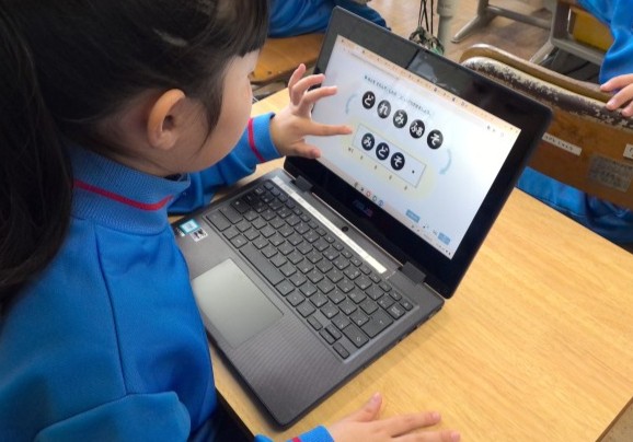 ICTを使って「どれみふぁそ」の中から3つの音を選び、「たん・たん・たん・うん」のリズムで旋律づくりにチャレンジしました。まずは、自分一人で組み合わせを考え音階を耳で確かめ、その後できた音階を友達と紹...