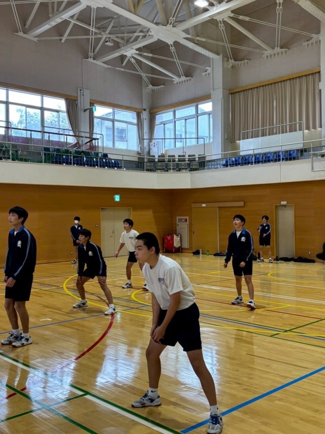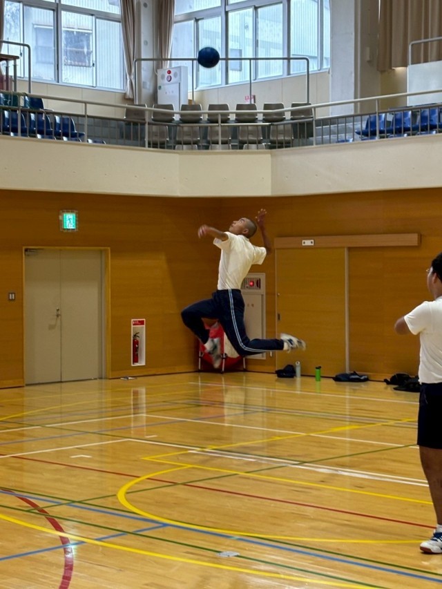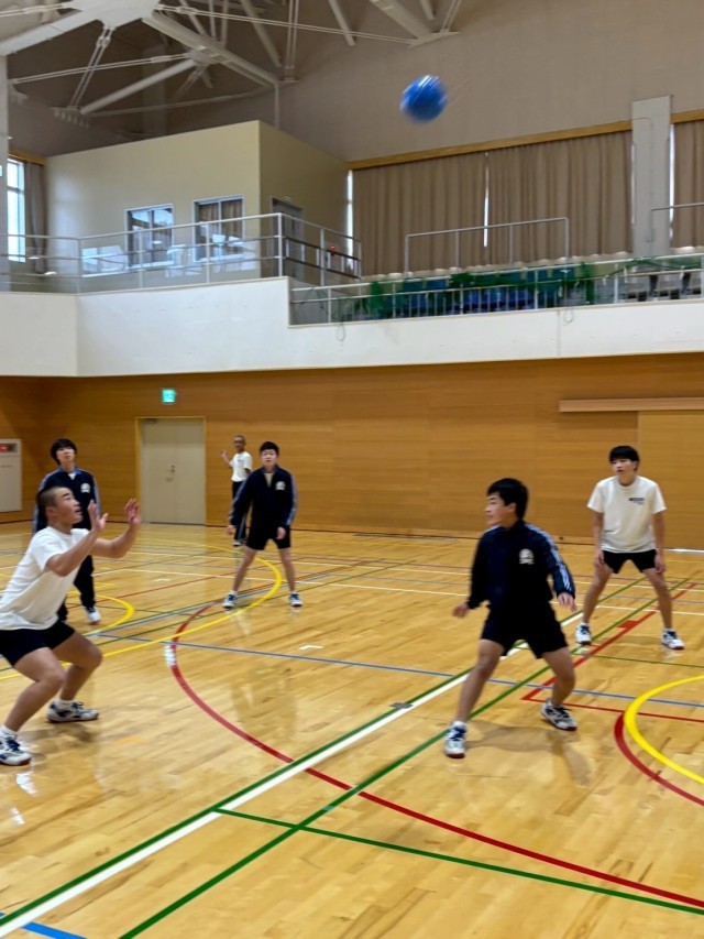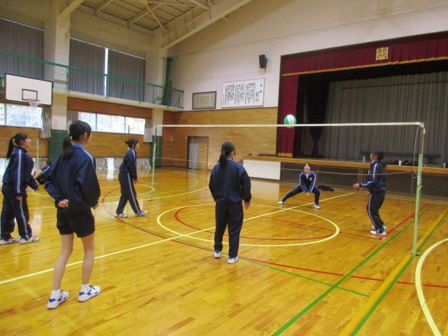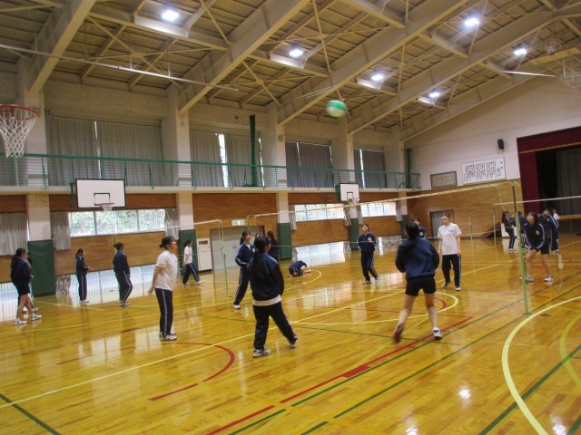男子は市民体育館でバレーボール、女子は中学校体育館でビーチバレーボールをしました。