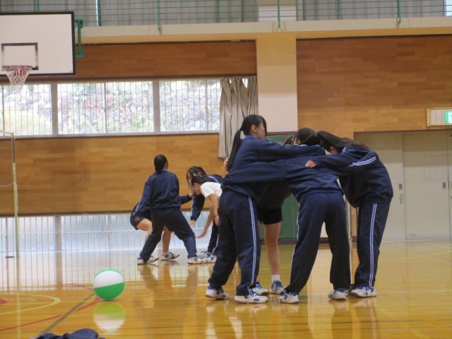 女子はクラスの垣根を越えたチーム編成で、試合前は円陣を組んだり、失敗しても笑顔で声を掛け合ったり、楽しく取り組んでいました。