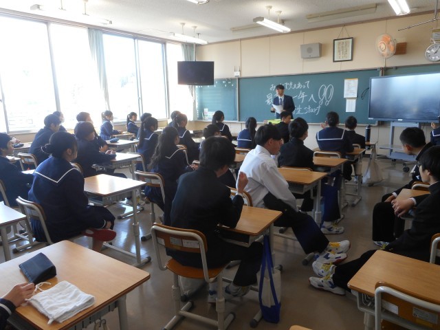 新任式・始業式後、新しいクラスで、新しい担任の先生と学級活動を行いました。
