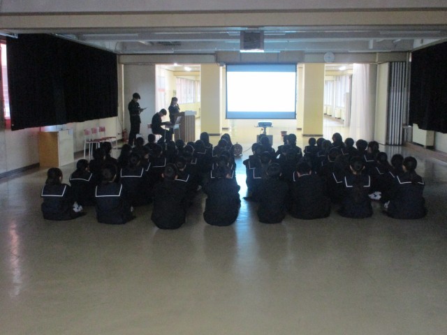 1年生に向けて、生徒会執行部の生徒が生徒会活動について説明しました。