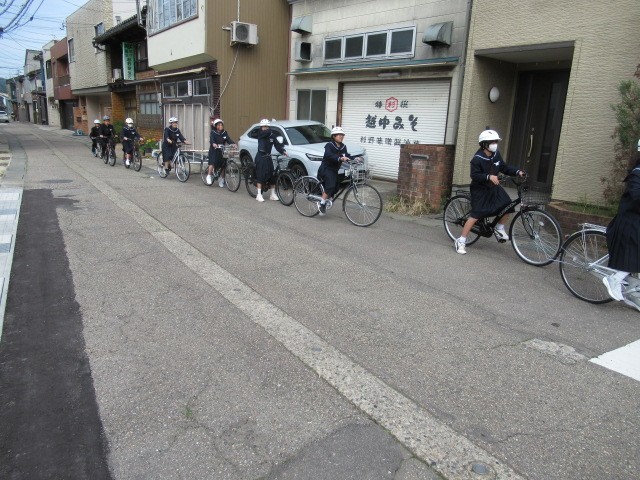 その後、1年生は実際に町中を自転車で走り、交通ルールを確認しました。
