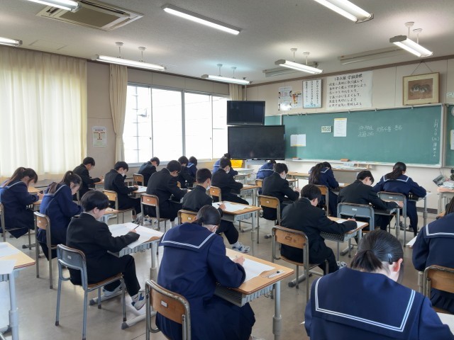 今日、明日の二日間にわたって、中教研学力調査が行われています。この調査は、県内のすべての中学校で一斉に実施され、教科の学習内容について、生徒一人一人の学習の実現状況を評価の観点からとらえ、その結果をもとに、教師は指導計画や指導方法の改善に努めることを目的としています。