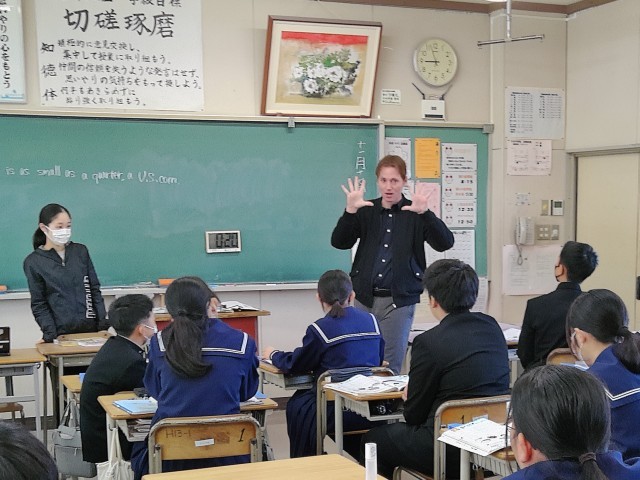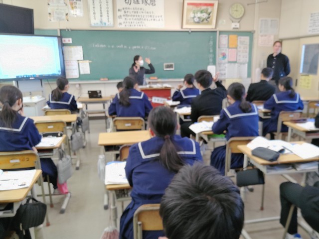 2年生の英語では、先月ALTとして着任されたばかりのタイラー先生との英語の授業を行っています。タイラー先生は、はじめての来日ですが、授業では積極的に生徒とのコミニケーションをとっていらっしゃいます。