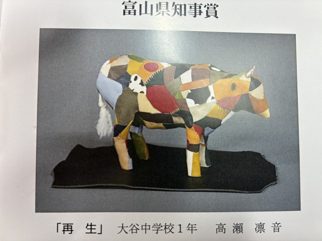 学校祭でも展示されていましたが、パッチワークで牛を表現した造形作品が「彫刻・工芸部門」で最高の評価を受けました。