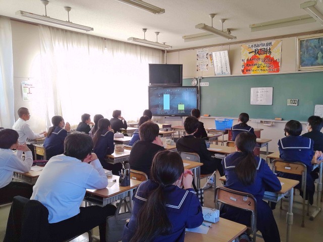 訓練の後は教室に戻って「南海トラフ巨大地震が起きたら?」というシミュレーション動画を視聴し、実際に災害が起きたときにどう行動すべきかを教室のみんなと一緒に考えました。