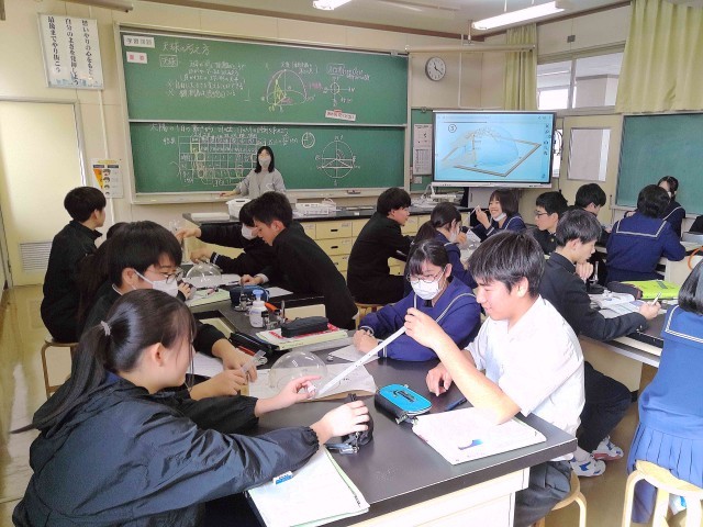 太陽の動きを透明半球に印し、その動きから日の出と日の入りの時刻を推測しています。
