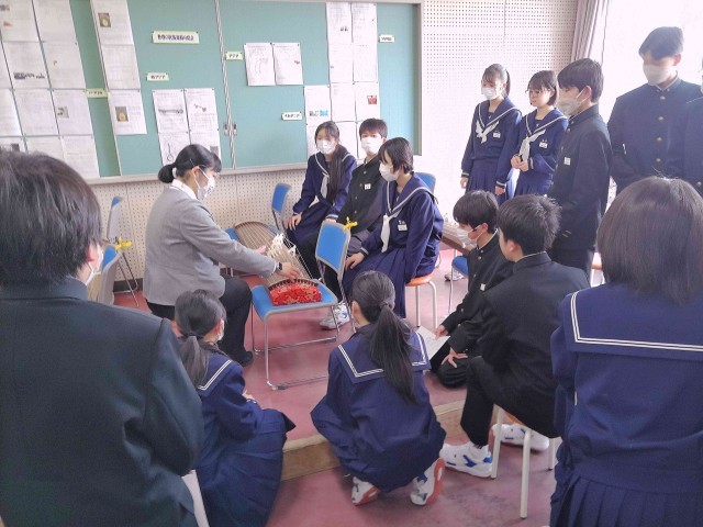 楽器は繊細で壊れやすいので、楽器の扱い方について、教師から丁寧に説明し、注意事項を確認してから、各々の班で実際に音を出してみました。