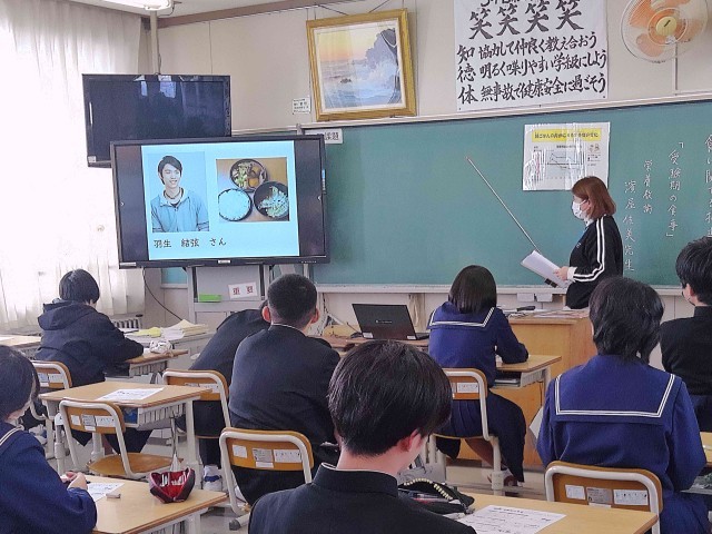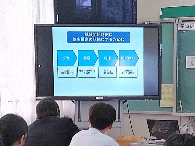 受験を控えている3年生に、受験期の食事の取り方についてアドバイスをしてくださいました。