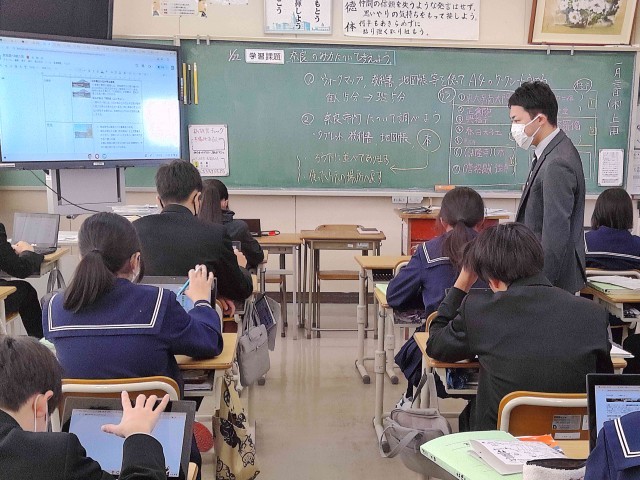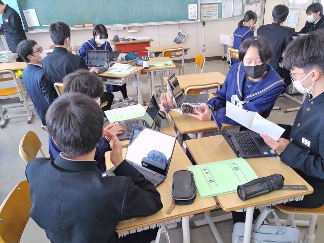 修学旅行では、奈良の班別学習を予定していますが、奈良の見所を学習者用端末を使って調べました。