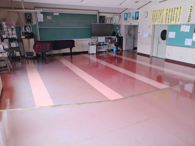 先日は音楽室のワックスがけを行いました。本校は築42年となりましたが、大切に扱われてきて、現在も床はピカピカです。これからも大切に使っていきます。