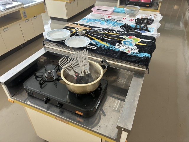 本日3限に家庭科室で、家庭科担当の教員が5限に行われる1年生の調理実習の準備をしていました。各班で使う調理器具を一つ一つ、丁寧に煮沸消毒していました。