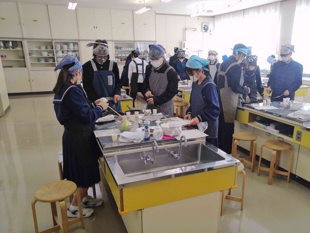 昨日の1年A組に続き、今日は1年B組で調理実習が行われました。