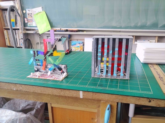 先輩方の作品を参考にして、自分の作品がどのよに立体的に表現できるかをイメージしながら制作活動を行いました。