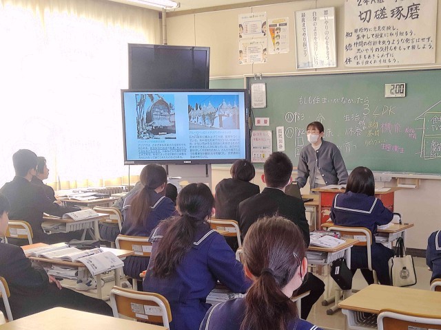 2年生の家庭科では、住居の役割について学習を進めています。「もしも住まいがなかったら」という学習課題で、私たちの生活の中で住まいがどのような役割をしているのか考えました。
