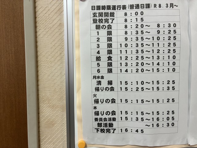 3月よりスクールバスの運行は行われず、遠方の生徒は自転車通学に戻ります。それに伴い、冬季時間から通常時間に変わり、来週からは8時15分登校完了となります。