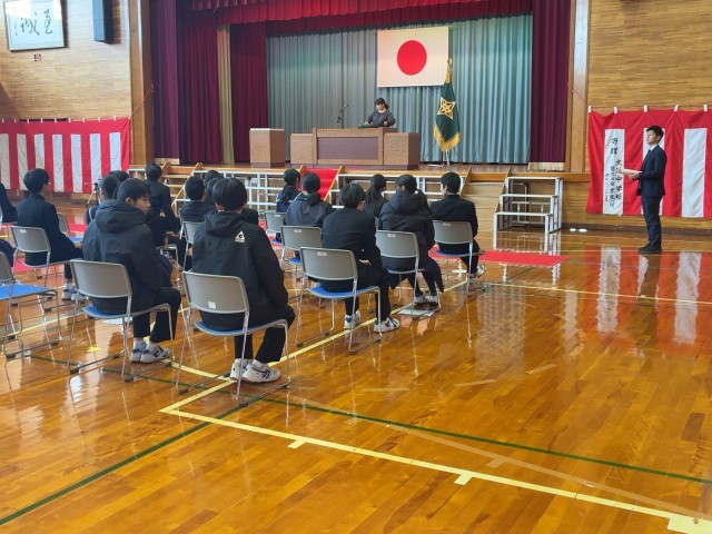午前中に会場設営が終わった講堂では、午後から3年生が卒業式練習を行っていました。本校の答辞は、卒業生全員が登壇して行います。練習を進めるにつれ、3年生の顔つきがどんどん変わっていく様子が伺えました。