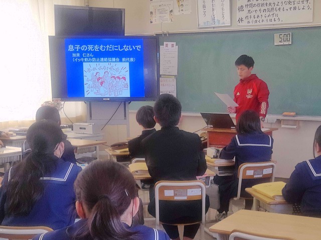 授業の最後に、大学1年生の19歳の息子を、急性アルコール中毒で亡くした父親の手記が読まれました。