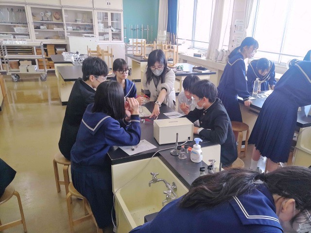 生徒たちは、電流計の針を覗き込むようにして数値を読み取っていました。
