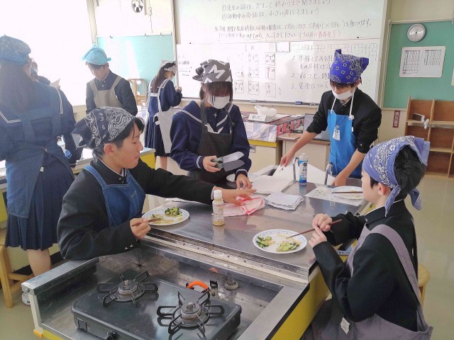 1年生の家庭科では、調理実習を行いました。今日の実習は包丁を使ってきゅうりを切る...