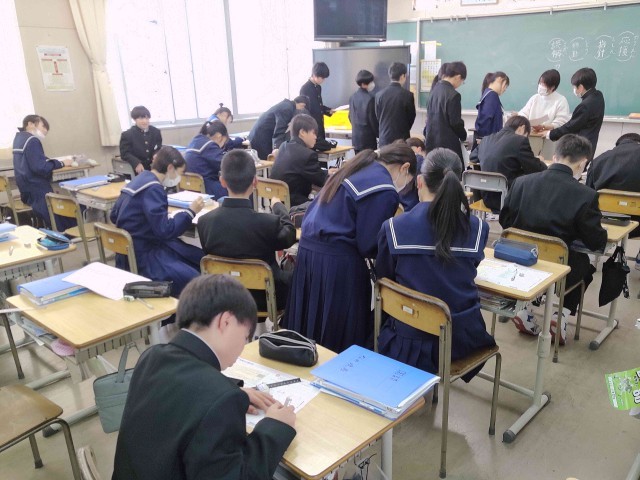 1年生の国語では書き初めの練習を行っています。本校には4階に剣道場があり、生徒は...