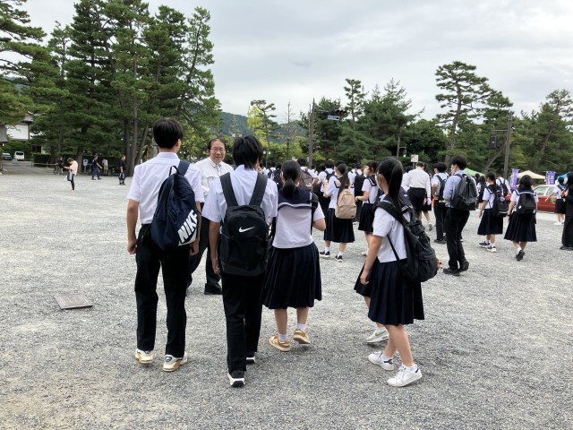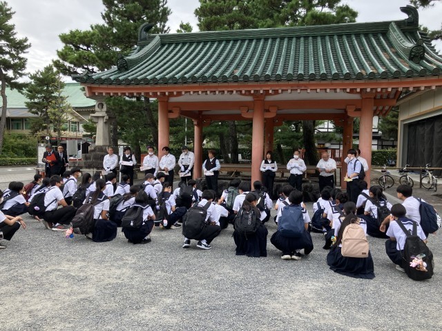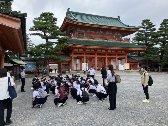京都に無事到着。平安神宮の大きな鳥居に歓声が上がりました。