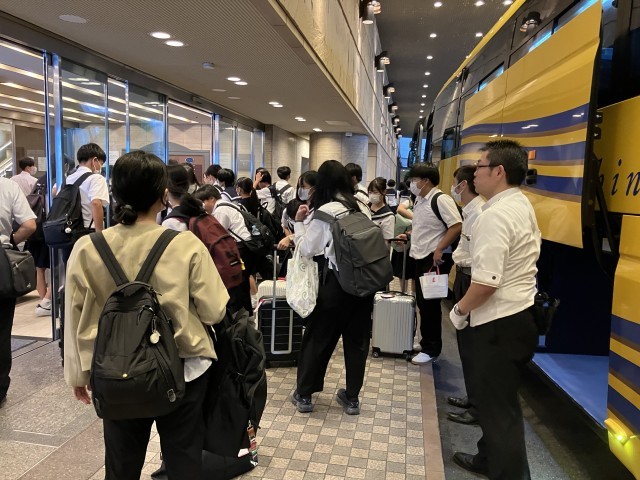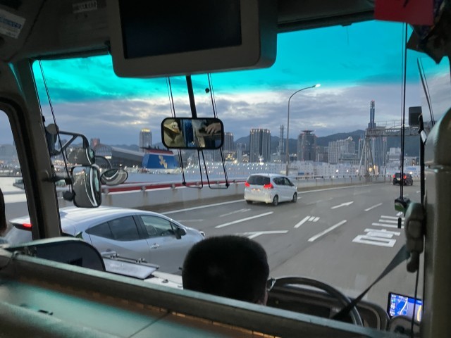 一度ホテルに荷物を置き、バスを乗り換えました。夕闇の神戸港が近付いてくると、バス内から「きれい〜」と歓声が上がりました。