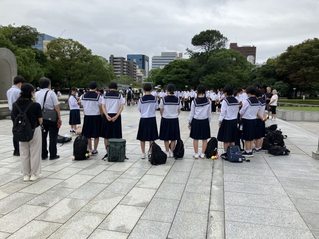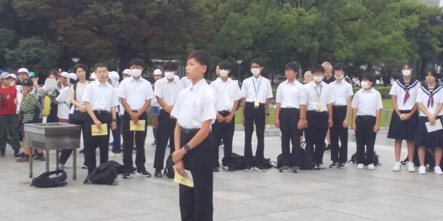 黙祷の後、代表の生徒が誓いの言葉を述べました。「自分たちの力は小さいかもしれません。でも一人一人が、世界の平和のために取り組んでいくことを、この広島の地で誓います」