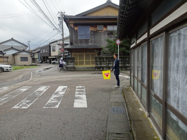 PTAの方が、生徒の朝の登校を見守ってくださっています。