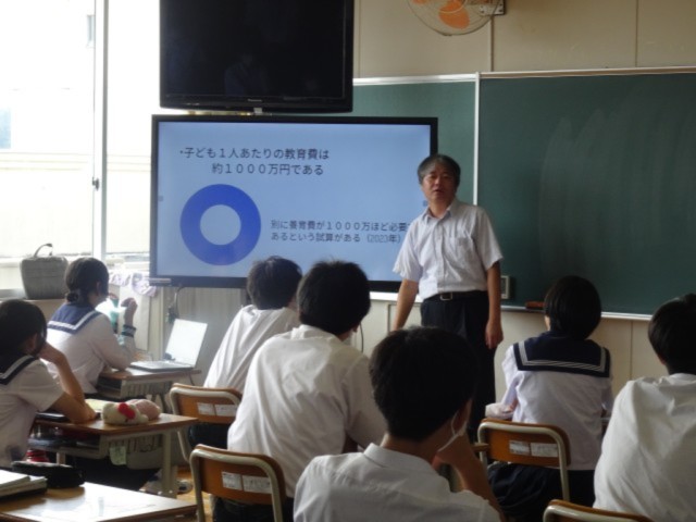 導入は小矢部市民のお金や収入に関するクイズを取り入れます。(まん中の写真)