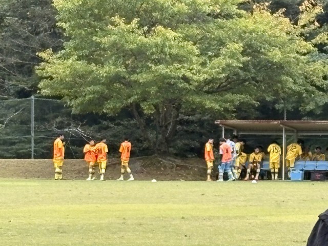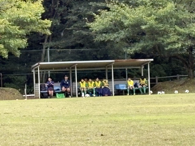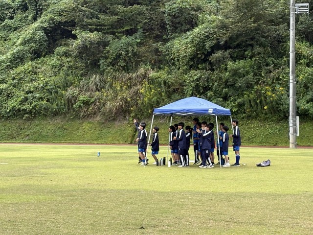 サッカーの新人大会は福光で行われています。どちらのチームにも本校の生徒が所属しています。いつもは同じ学校にいる生徒が今日は分かれて戦います。どちらのチームも頑張れ!