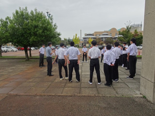 写真は、他校の生徒が会場に到着するまで時間に、合唱練習をしている2年生の様子です。