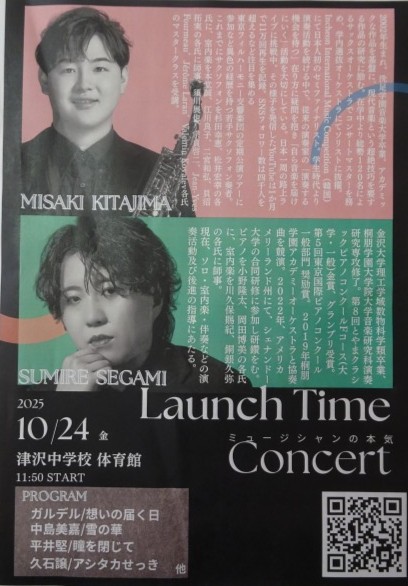 10月24日(金)の学習発表会では、本校OB 北島 実幸(きたじま みさき)さんのコンサートがあります。